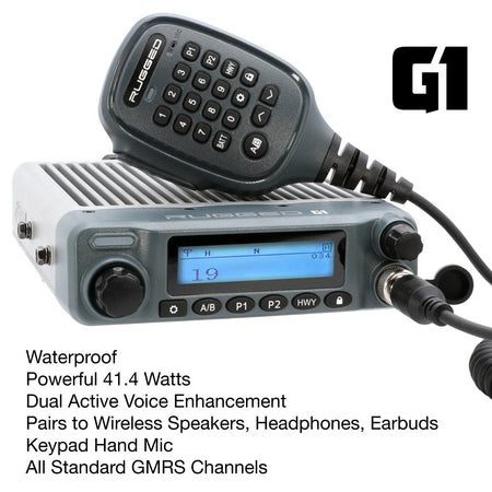 All GMRS radios, including Rugged G1, G4, GMR45, GMR25, GMR2, and GMR2 PLUS. All GMRS radios from other manufacturers including Motorola, Midland, Uniden, and many more. Also compatible with FRS radios on channels 1-7 and 15-22.